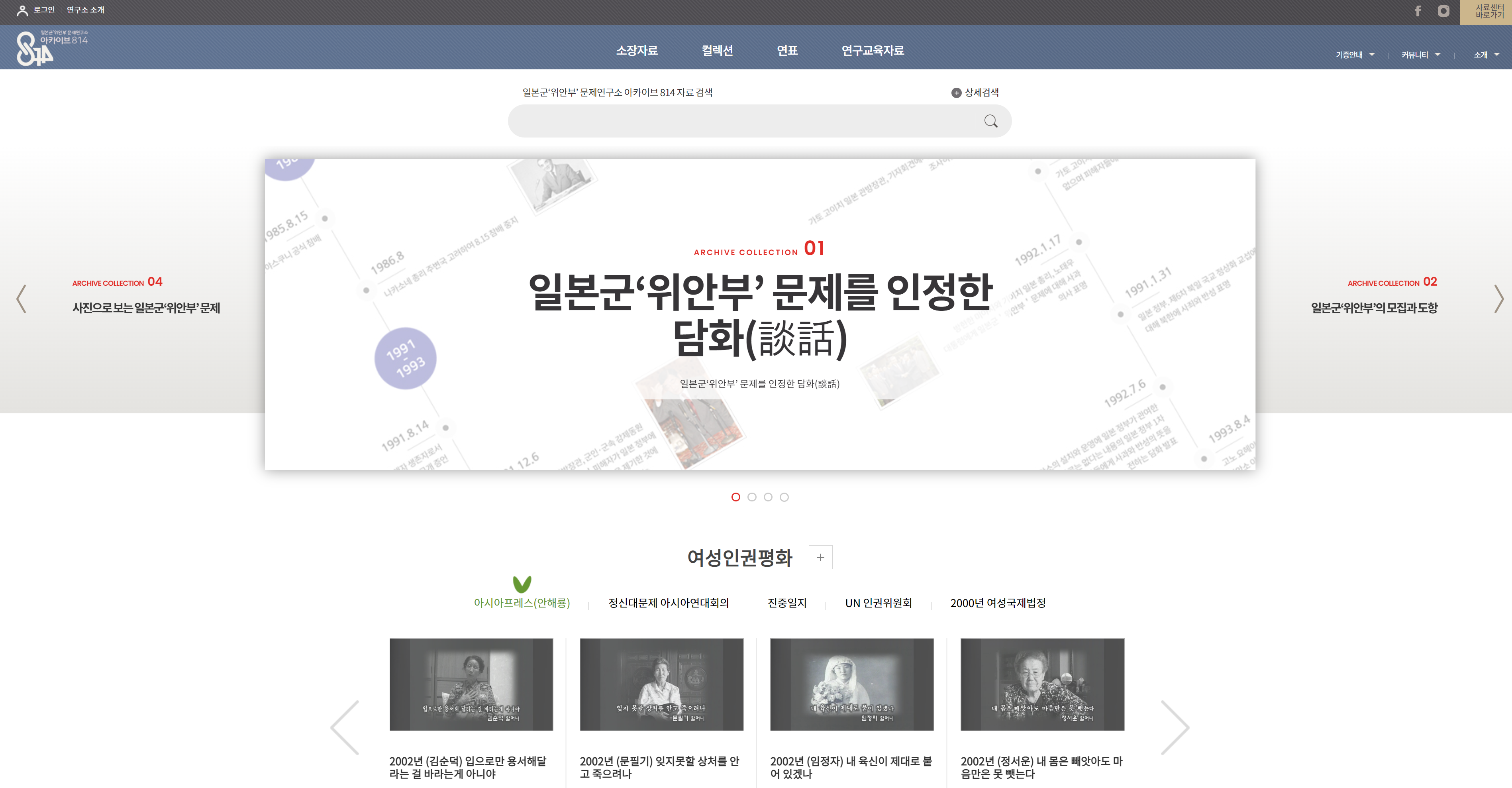 "아카이브814는 일본군'위안부' 문제에 관한 지속적인 조사와 연구를 통해 위안소가 운영되었던 상황을 이해하고 국민들이 일본군'위안부' 문제에 쉽게 접근할 수 있도록 관련 자료를 수집 ⋅ 정리하여 제공하고 있습니다.