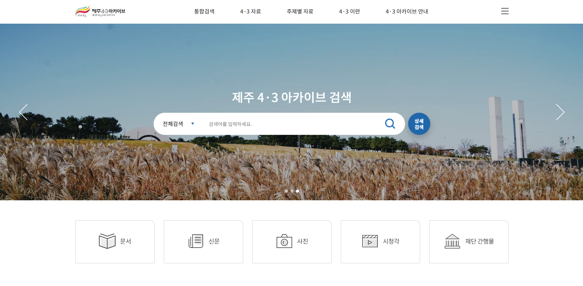 "제주4·3아카이브는 4·3사건 관련 자료 약 1만 2000여건을 검색할 수 있는 디지털 아카이브입니다.