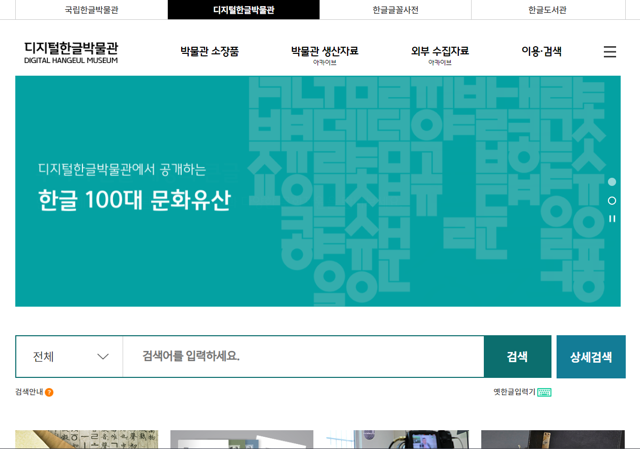 “국립한글박물관은 다양한 한글 관련 자료의 수집, 관리 및 서비스를 통해 한글 연구 및 한글 문화유산 이용을 활성화하고자 한글 아카이브 누리집인 '디지털한글박물관'을 구축 운영하고 있습니다.