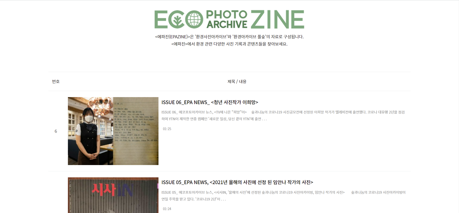 환경사진아카이브가 시민, 연구자, 학생 등에게 정보의 바다이자 환경의 아름다움과 가치를 체험하고 향유하는 예술적 통로로 기여할 수 있기를 기대합니다.