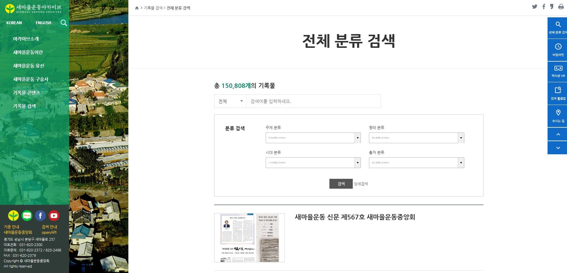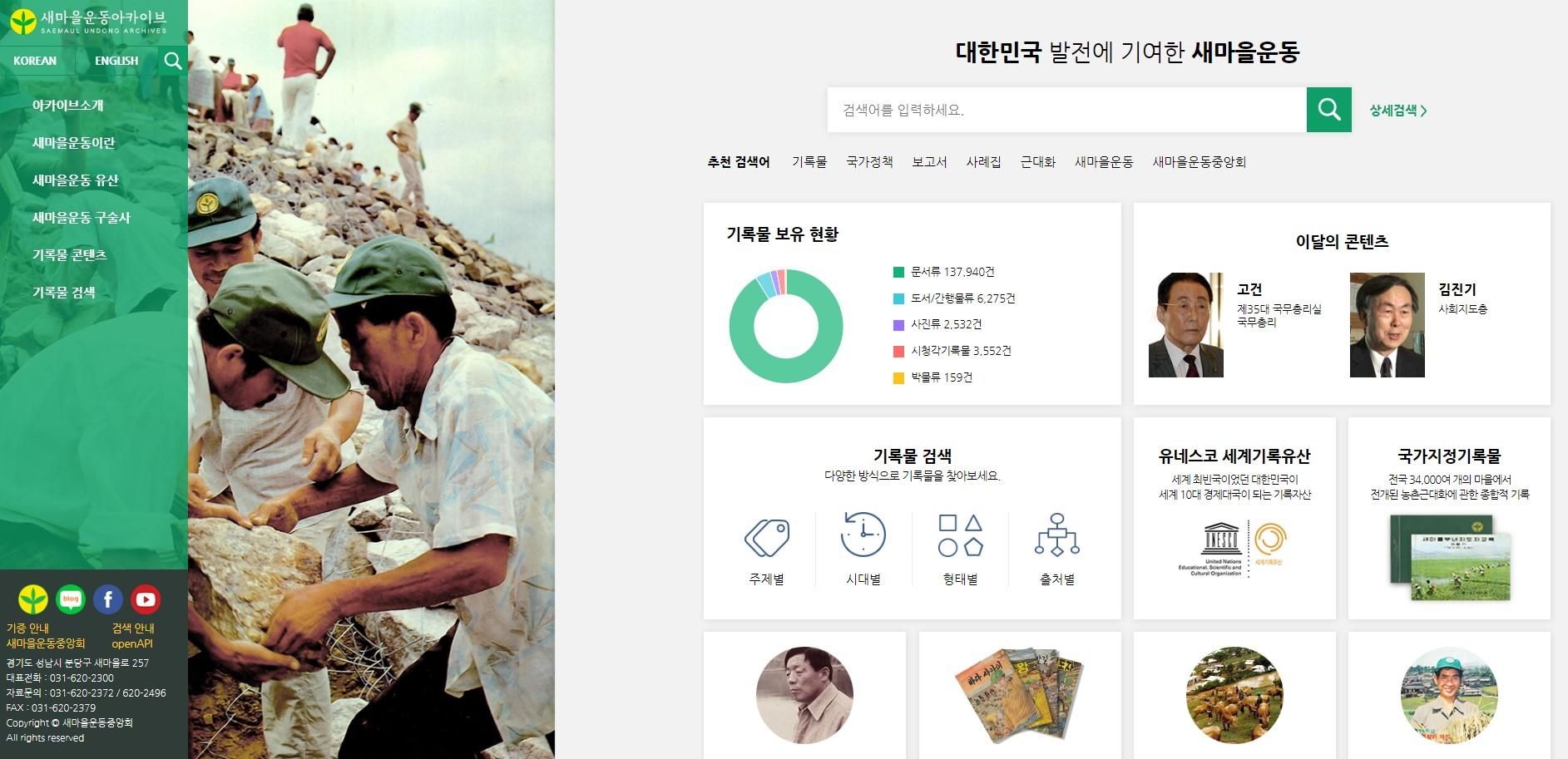 새마을운동아카이브는 새마을운동의 과거와 현재, 미래가 공존하는 '새마을역사관' 소장자료와 각종 새마을운동 관련 이야기를 바탕으로 조직한 아카이브입니다.