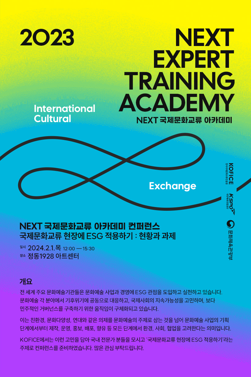 이러한 기후비상사태에 대응하는 전 세계 문화예술기관들의 기후 어젠다와 행동주의 전략이 한국의 문화예술 공공기관에서 채택한 ‘ESG 경영’의 맥락과도 본질적으로 상통하는 것으로 볼 수 있을까? 지난 2월, 필자는 한국국제문화교류진흥원에서 주최하는