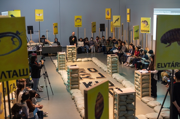 이에 기반해 드수자는 상호 의존적인 생명체의 생태계를 파괴하면서 종의 멸종을 주도하는 근대 법을 무효화하고자 대안적 법안으로 ‘세대 간 기후 범죄 법(Intergenerational Climate Crimes Act)’을 작성하고, 2021년 10월 암스테르담 비영리 예술기관인 Framer Framed에서 첫 번째 재판을 열었다. 이 재판에서는 네덜란드 정부와 Unilever, ING, Airbus와 같은 네덜란드에 등록된 초국적 기업이 저지른 행위가 기후범죄 행위로 기소됐다. 각 지역의 뮤지엄 또는 예술기관에 설립되는 CICC는 예술 프로젝트이자 기후 행동을 위한 활동가들의 도구이며, 지역민들의 삶과 토착 지식에 권위를 부여하는 법정이자 민주적 포럼의 장이다.3)