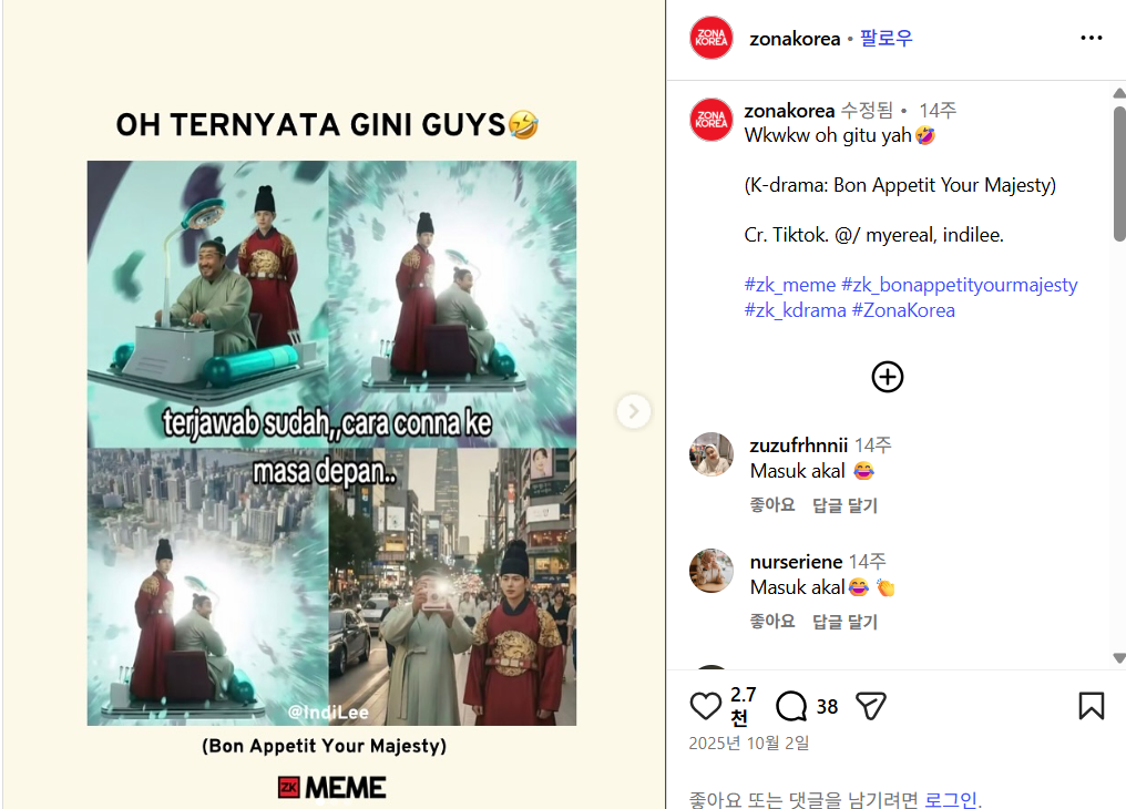<인도네시아 팬이 제작한 밈(meme) (<폭군의 셰프>의 왕과 은둔 발명가 장춘생의 관계를 알라딘과 지니에 대입)