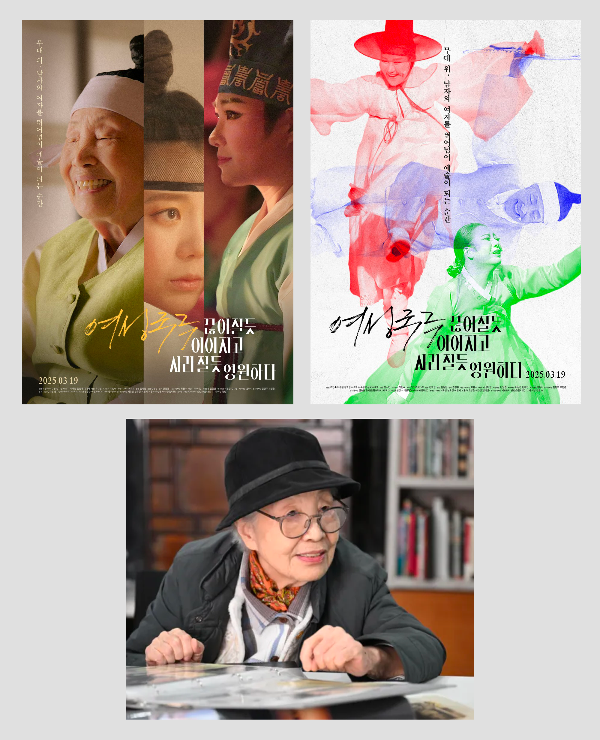 조영숙 선생님은 여성국극 1세대 배우로 극에서 감초가 되는, 일명 ‘쌈마이’역의 대가다. 구순이 넘은 선생님은 지팡이 없이는 걷기 힘들 정도로 허리가 굽으셨다. 그런 선생님이 무대에 서서 방자 연기를 펼치시면 손짓 하나 눈빛 한 번에 속수무책으로 웃고 울게 된다. 어느 젊은 창자보다 우렁찬 발성과 정확한 발음, 언제 굽었나 싶게 꼿꼿이 편 허리를 보면 선생님은 무대 위에서 언제까지고 살아계실 것만 같다. GV를 마치고 선생님과 사담 몇 마디 나눌 수 있지 않을까? 어쩌면 사진도 찍을 수 있을지 모른다. 마음속으로 그런 사적인 팬심을 떨치느라 혼이 났다.