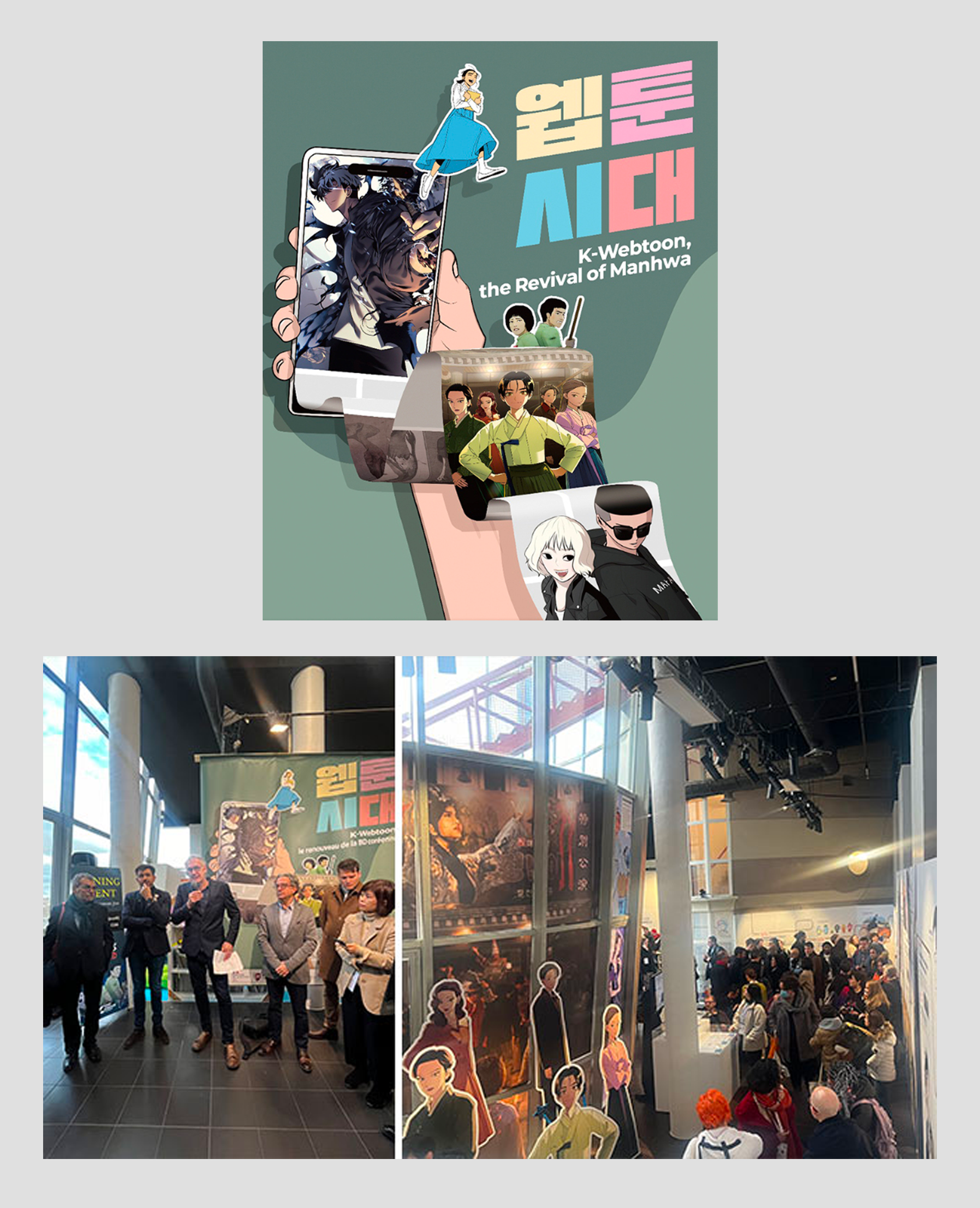 ‘프랑스 앙굴렘 국제 만화축제’에서 개최된 <웹툰 시대> 특별전 포스터(위)와 현장 사진(아래)