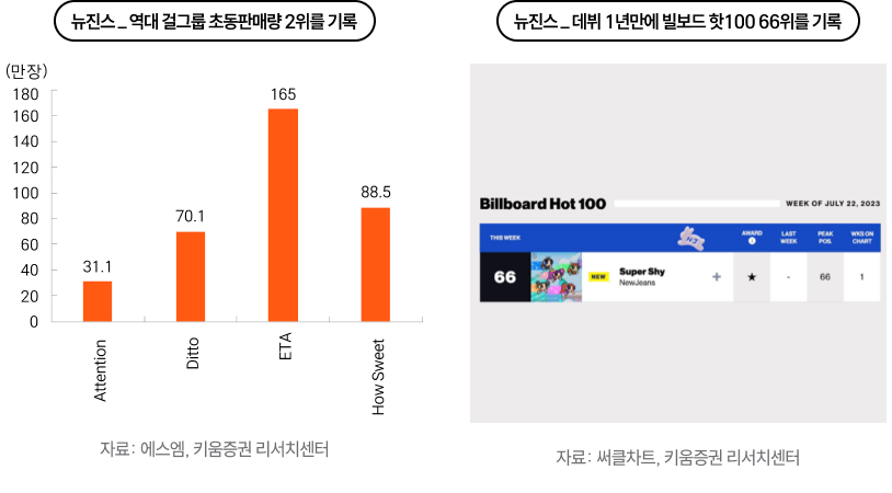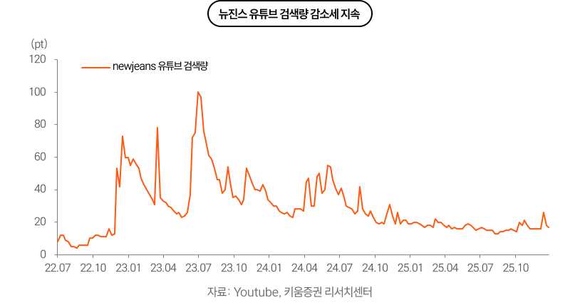 그럼에도 뉴진스가 가진 기본적인 스타성은 여전히 유효하다. 데뷔 초부터 글로벌 시장에서 빠르게 주목받으며 '빌보드 핫 100'에 진입했던 이력은 쉽게 사라지지 않는다. 따라서 복귀 이후 뉴진스의 음원 스트리밍 성과, 유튜브 조회수 회복 속도, 앨범 초동 판매량 등이 시장이 가장 먼저 확인할 지표가 될 것이다. 단기 실적 수치보다는 복귀 후 몇 개월간 지표가 어떻게 안정화되는지가 더 중요한 판단 기준이 될 것으로 보인다.