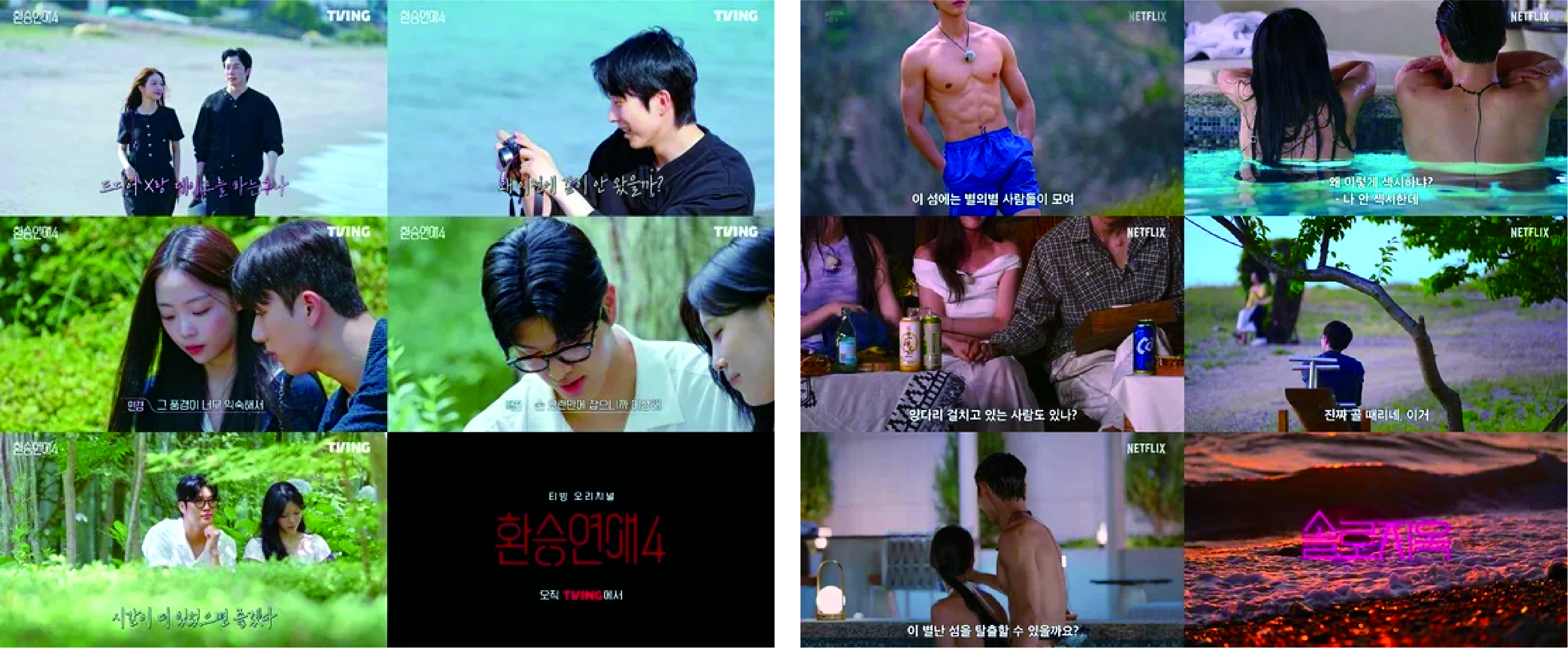 <환승연애> 시즌 4, <솔로지옥> 시즌 5(출처: 티빙, 넷플릭스 예고편 캡처)