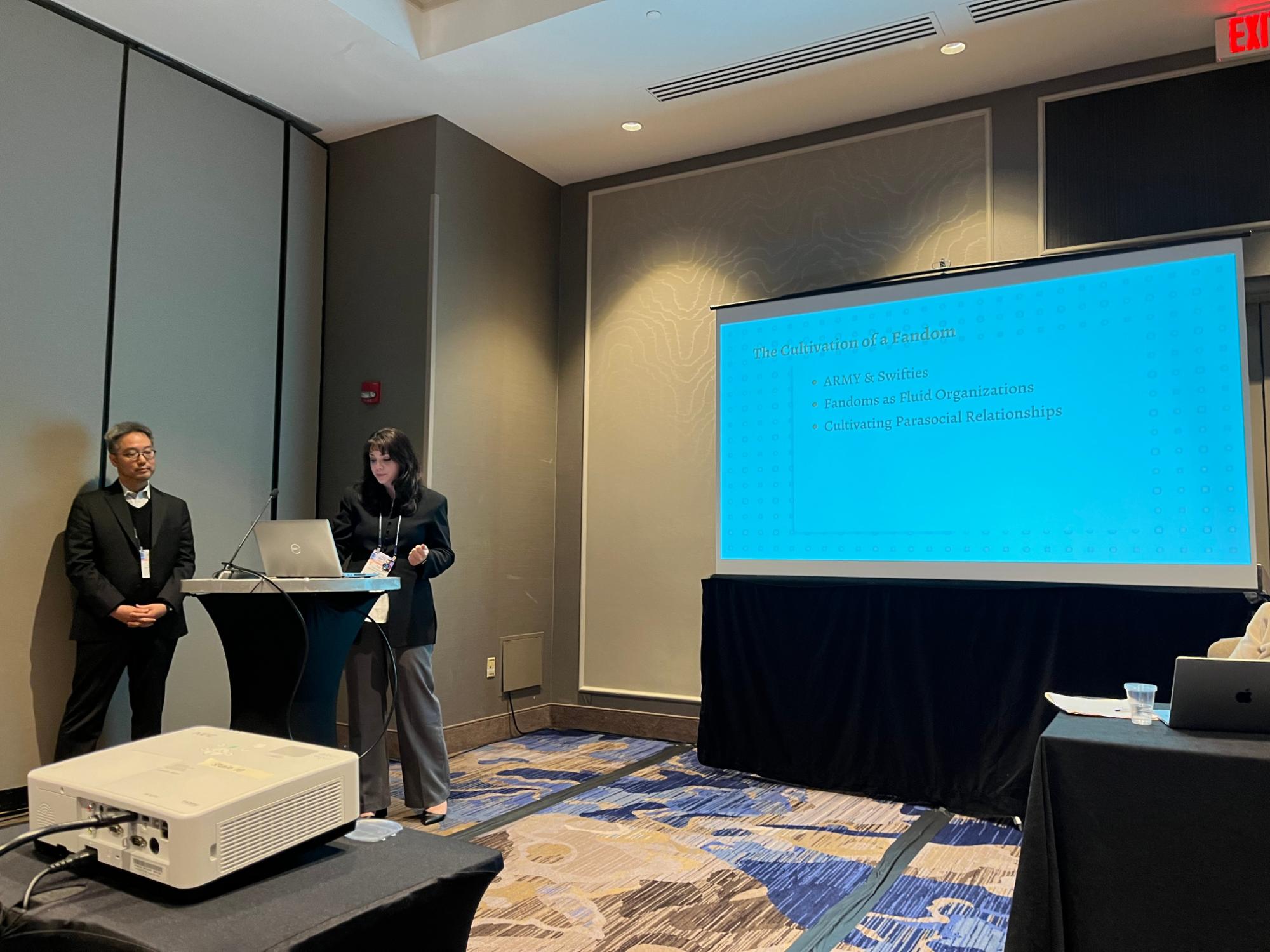 제 2발표 : ARMY vs. Swifties: 두 글로벌 팬 커뮤니티의 형성과 관계 구축(ARMY vs. Swifties: Community Construction and Relationship Cultivation of Two Successful Fan Communities) - Chang Wan Woo 교수, Victoria Bertram 교수, Yufan "Sunny" Qin 교수, Kristen Okamoto 교수(James Madison University)