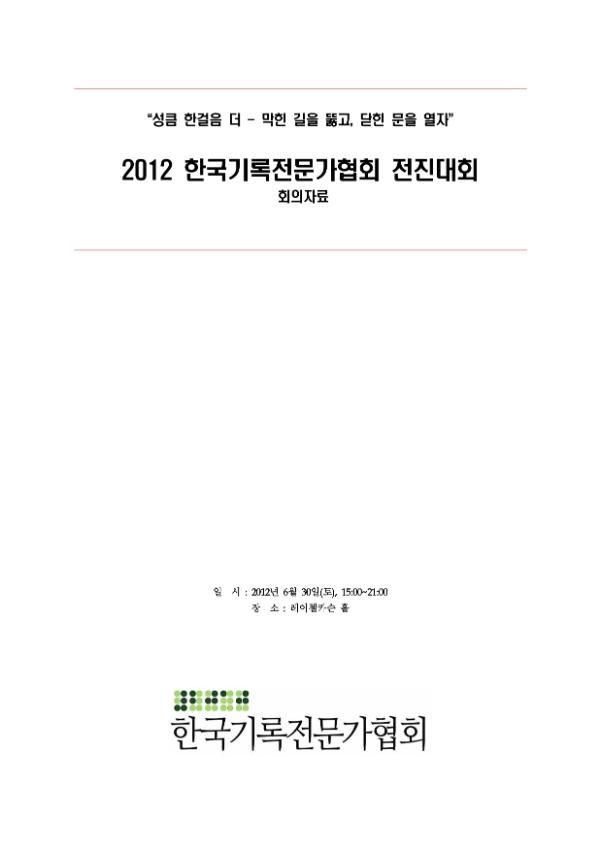 2012 한국기록전문가협회 전진대회 자료집 공개