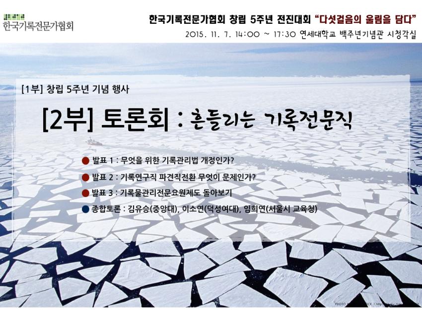2015년도 한국기록전문가협회 전진대회(창립5주년) 진행순서와 준비 사항