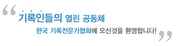 한국기록전문가협회는 기록관리의 전문성 확립과 기록의 가치 수호를 통한 민주주의와 공공의 이익에 대한 기여를 목적으로 설립된 기록전문가들의 자발적 모임입니다.
