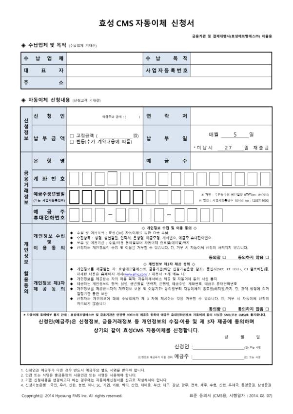 ○ 협회비 자동이체를 신청하시는 경우 아래 자동이체 동의서를 작성하시여,
