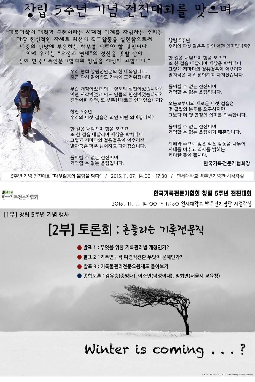 2015년도 한국기록전문가협회 전진대회(창립5주년) 진행순서와 준비 사항