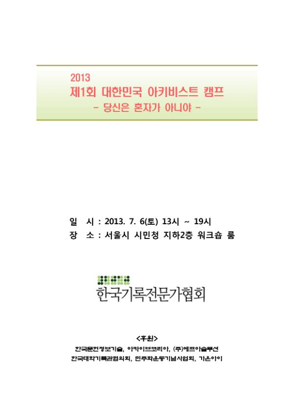 2013년 제1회 대한민국 아키비스트 캠프의 행사 중 하나인 '생활과 기록'강연(2013년 6월 1일, 연세대)에 대한 평가 설문. 제1회 대한민국 아키비스트 캠프 전체에 대한 평가 설문지와 결과 정리 기록은 별도로 있다.