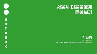 발간사 서울시 마을공동체 정책이 2012년 본격적으로 시작해 어느덧 9년차에 이르렀 습니다. 그 의미를 되짚어보면 첫째, 수혜자의 위치에 있던 ‘주민’을 사회정책이라는 무대의  진정한 ‘주인공’으로 초대한 것입니다. 둘째, 주민이 마을공동체 활동을 통해 사회 참여를 경험토록 했다는 것입니다. 셋째, 이러한 과정을 통해 궁극에 지역의 문제를 스스로 다스리는 주민자치를 꿈꾸게 했다는 것일 겁니다.  이 책은 길다면 길고 짧다면 짧다고도 할 수 있는 9년 남짓의 시간 속에서 어떤  고민과 흐름, 그리고 변화 속에서 정책이 형성되어 왔는지를 담고 있습니다. 서울시 마을공동체 정책의 시작을 함께 해 온 분들과 1년 여 간 숙의와 토론과정을 통해 정리 되었습니다 . 꽤 긴 시간동안 곁을 내어준 모든 분께 감사드립니다. 더불어 지금까지 서울시 마을공동체 정책에 참여해 수많은 경험과 의미를 나눠준 시민여러분께 더욱 깊이 감사드립니다.  서울시 마을공동체 정책에 참여한 수많은 사람들의 고민과 열정, 수없이 거듭된 회의와 토론, 공론의 자리들. 그 모든 역사를 이 한 권의 책에 담기에 부족함이 있습니다. 여전히 할 일이 남은 지금, 지나간 발자취를 되돌아보며 우리가 현재 어디에 서 있고 어디로 향해야 할지 좌표를 설정하는 데 득이 되는 길을 내고자 합니다.  서울시 마을공동체 정책은 특정된 소수를 위한 정책이 아닌 우리 모두를 위한 정책입니다. 이러한 지향이 정리된 이 책이, 나와 우리 삶에 어떤 의미로 다가오는지 좋은 질문을 던지고 점검해보는 시간을 선사할 것입니다. 서울시 마을공동체종합지원센터장  전 민 주