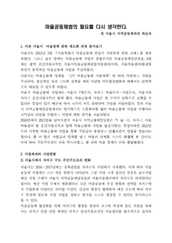 마을공동체 활성화를 위한 법제화 전망 토론회 자료집_토론01