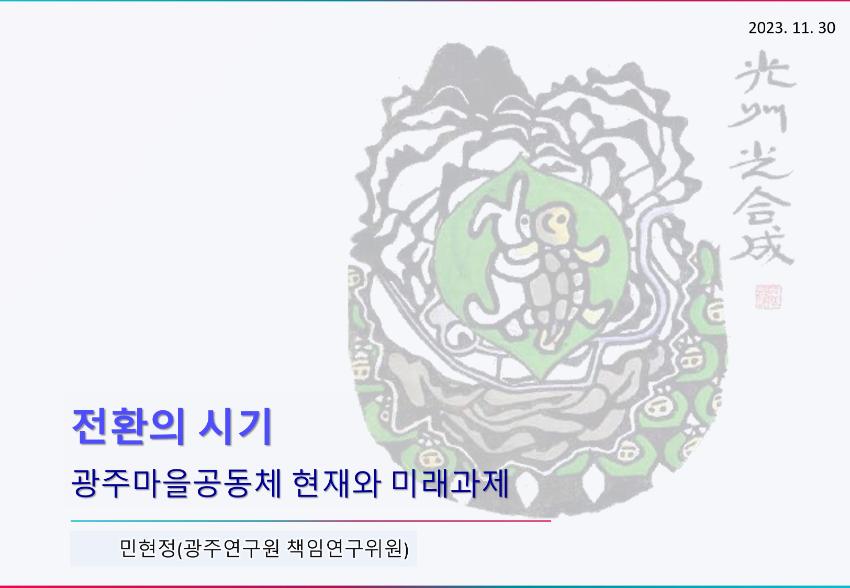 1. 전환의 시기, 광주마을공동체의 현재와 미래 과제 / 민현정(광주연구원 책임연구위원)