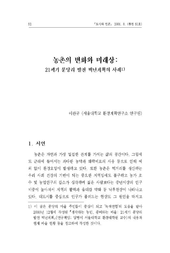 농촌의 변화와 미래상 : 21세기 문당리 발전 백년계획의 사례, '도시와빈곤' 2001. 8.(통권 51호)