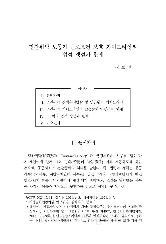 - 민간위탁 가이드라인의 고용승계의 쟁점과 한계