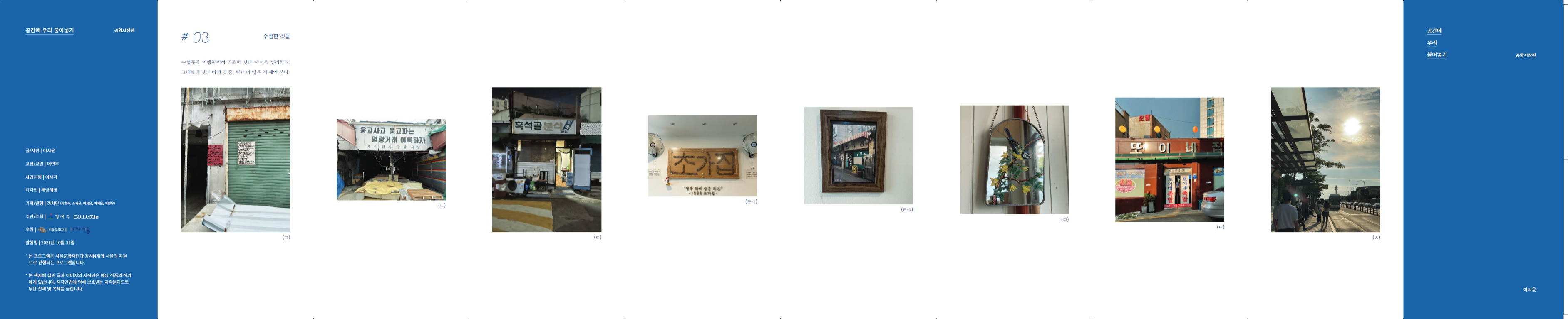 또 다른 청년 기획자 모임인 ‘강서문화기획단’은 <계속, 강서>라는 마을 잡지 만들기 프로젝트에 도전했습니다. 이들 또한 한 권의 잡지를 만들기 위해 반년 동안 기획에서부터 글쓰기, 사진, 콘텐츠 제작 인쇄, 디자인 기초, 홍보 및 유통에 관한 교육을 받았으며, 잡지 제작의 모든 과정을 아카이빙했습니다. 그리고 등록된 기록과 정보를 기반으로 하여 [강서문화사전]과 [강서구 문화지도]와 같은 콘텐츠를 생산하여 강서 아카이브의 정보 활용도를 높이기도 했습니다.