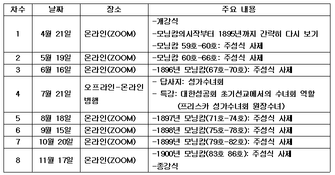 2026년에는 모닝캄 59호-86호(1895년-1900년)까지 강독할 예정입니다. 많은 참여와 지원 부탁드립니다.