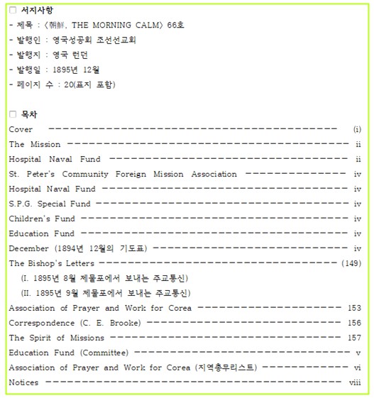 영국성공회 조선선교회가 런던에서 펴낸 잡지 〈모닝캄〉 66호