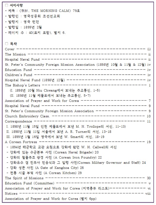 영국성공회 조선선교회가 런던에서 펴낸 잡지 〈모닝캄〉 79호
