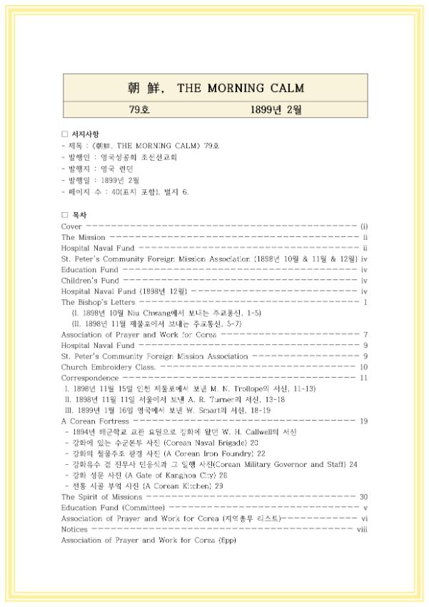 영국성공회 조선선교회가 런던에서 펴낸 잡지 〈모닝캄〉 79호
