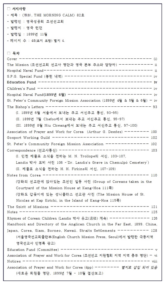 영국성공회 조선선교회가 런던에서 펴낸 잡지 〈모닝캄〉 82호