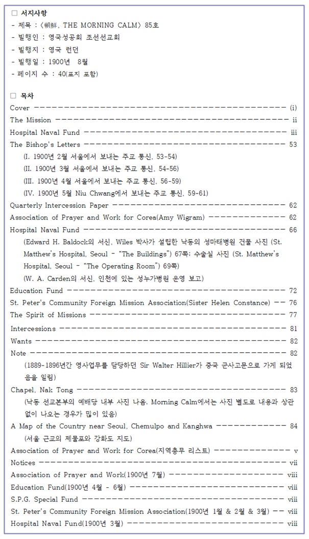 영국성공회 조선선교회가 런던에서 펴낸 잡지 〈모닝캄〉 85호