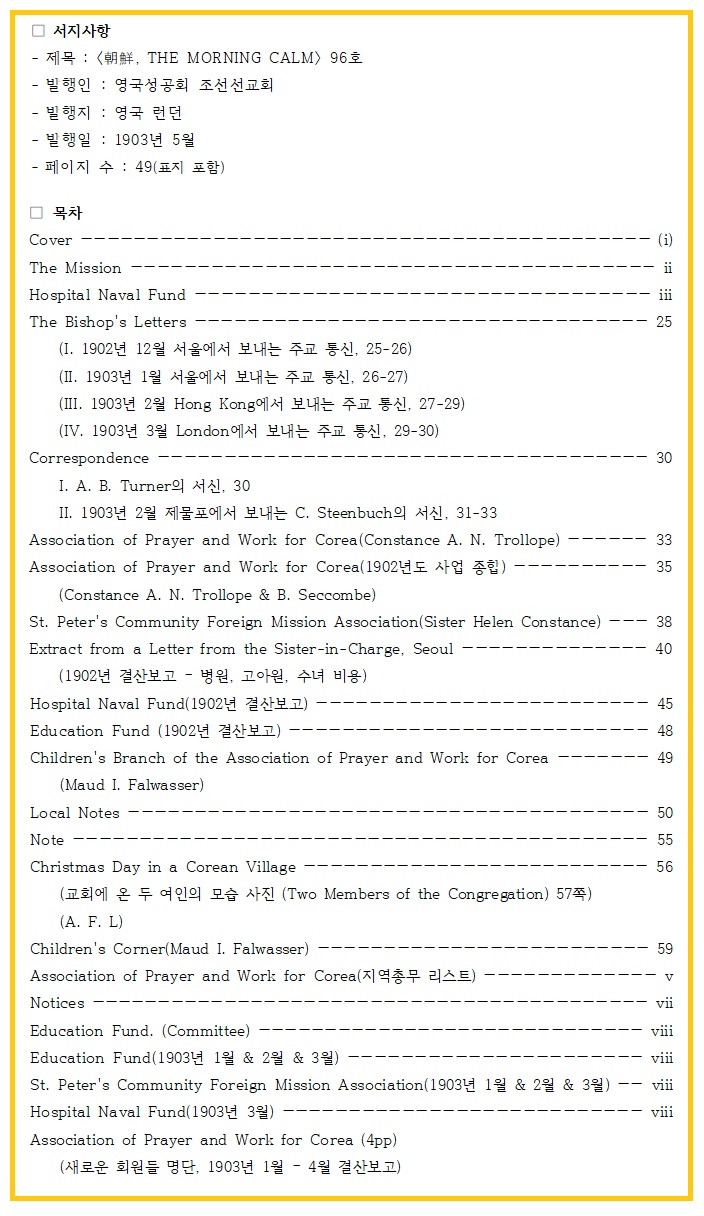 영국성공회 조선선교회가 런던에서 펴낸 잡지 〈모닝캄〉 96호