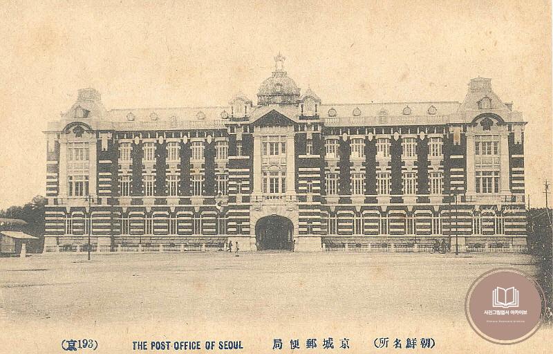 1920년대 경성의 대표적인 엽서 발행처 '일출상행(히노데)'에서 발행한 조선명소 시리즈 중 경성우편국이 담긴 기록이다. 조선명소 시리즈 중 193京에 해당하는 사진그림엽서이며, 경성우편국은 오늘날 서울중앙우체국 자리에 위치했던 기관으로 1913년 착공하여 1915년 완공된 건물이다. 당시 조선은행과 미츠코시 백화점이 맞은편에 위치하고 있었으며, 명동으로 들어가는 길목에 위치한 요지였다.