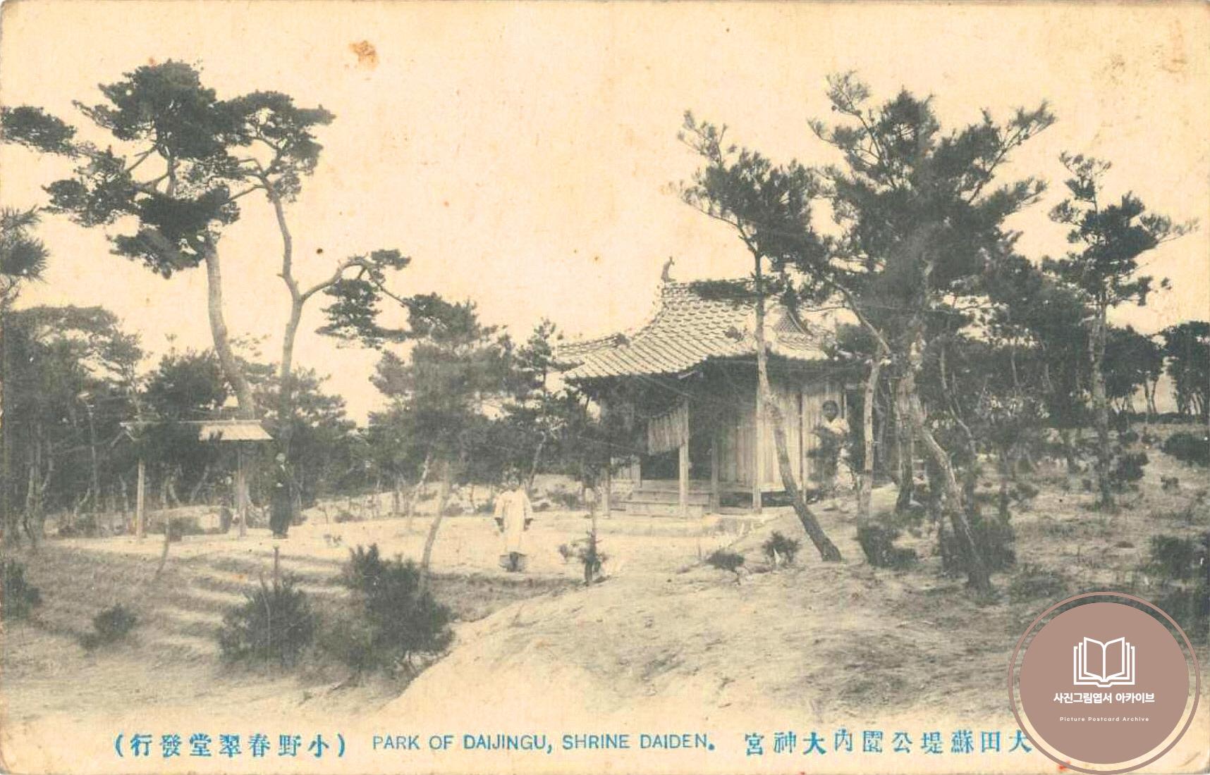 오늘날 대전광역시 소제동 일원에 위치했던 소제공원과 그 내에 위치한 일본식 신사(神社) 태신궁(太神宮)의 모습이 담긴 사진그림엽서이다. 내지인의 본격적인 한반도 이주가 시작되면서 대전에도 다양한 일본인이 유입되었는데, 소제공원의 태신궁도 1907년 일본인에 의해 설립된 대전의 첫 신사이다.