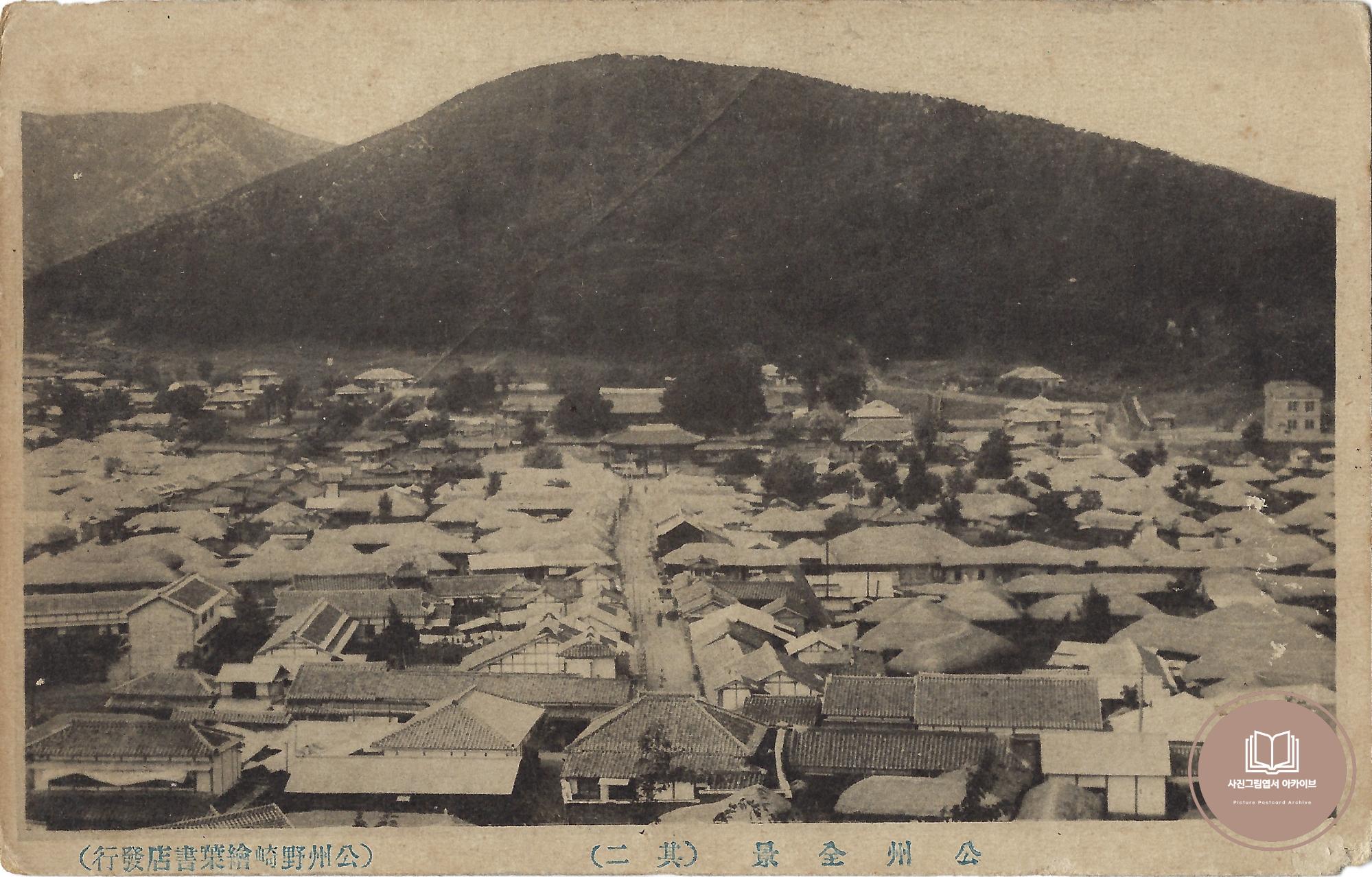 1910년대 공주야기회엽서점(公州野崎繪葉書店)에서 발행한 공주 시가지 전경 사진그림엽서이다. 기록 하단의 제목에 '其 二'란 표시로 보아 좌우로 이어지는 파노라마 형식의 사진그림엽서로 추정된다. 본 자료 속에는 봉황산 자락 아래에 위치한 충청남도 도청의 모습을 확인할 수 있다. 도청 내에 근대식의 석조 건축물이 가설되기 이전의 모습을 보이며, 정문의 포정사 모습도 온전히 남아있다. 포정사를 기준으로 우측 끝단에는 공주지방법원의 모습을 볼 수 있고, 포정사와 공주지법 중간의 봉황산 자락 바로 아래에는 오늘날 풀꽃문학관으로 활용 중인 옛 헌병대장 관사 모습도 볼 수 있다.