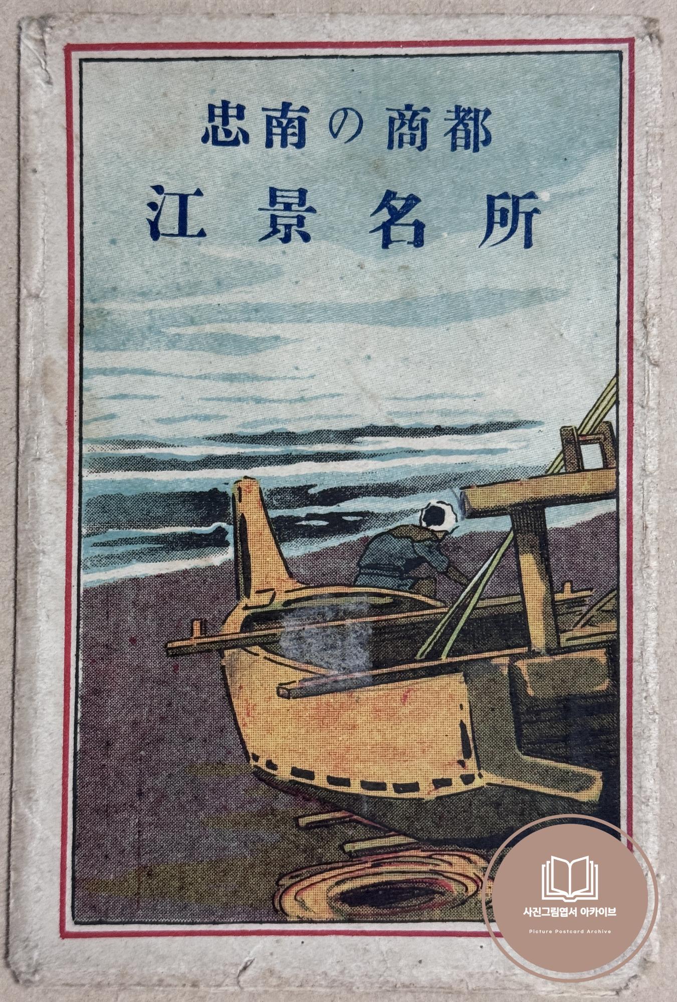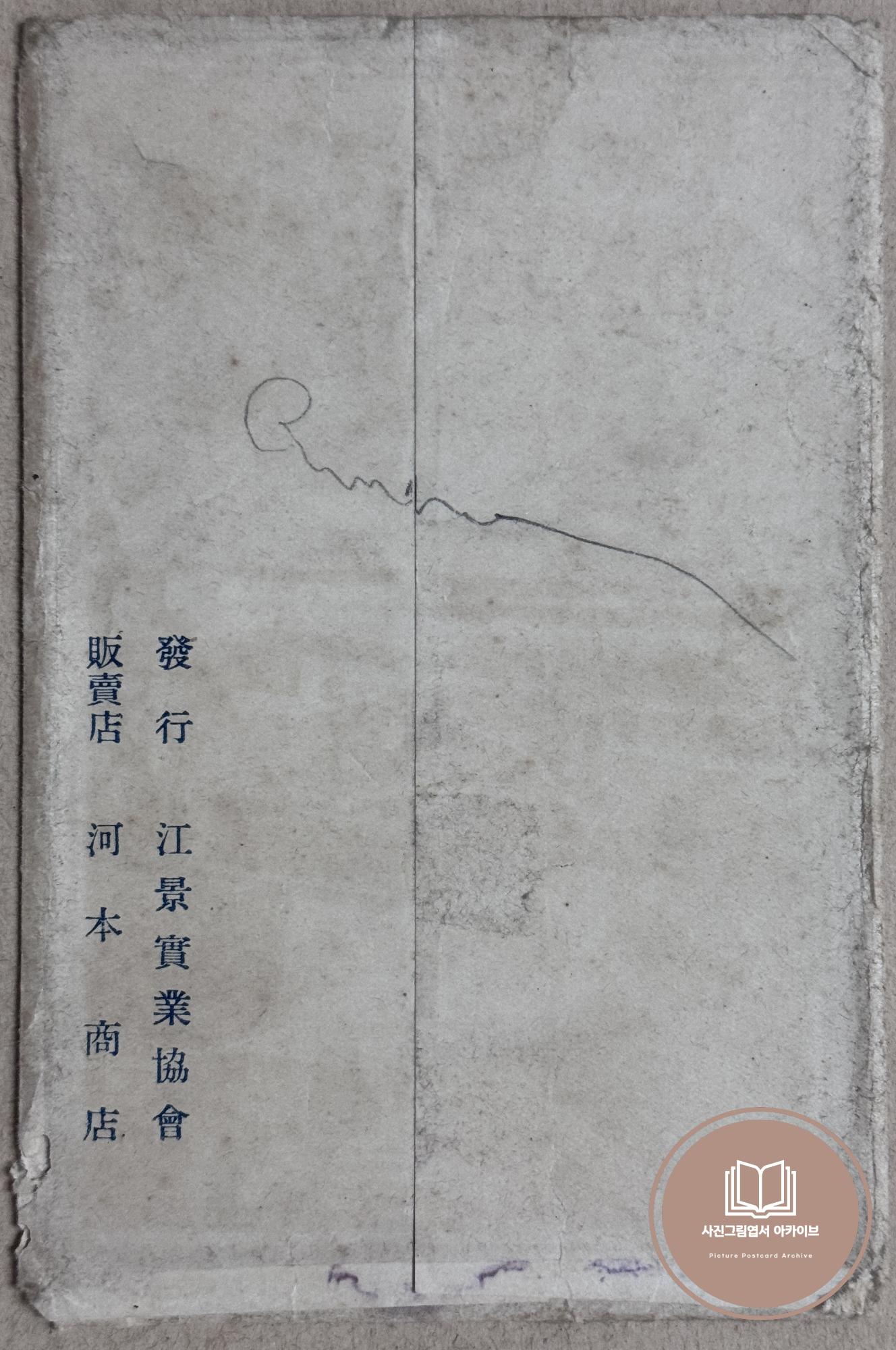 1910년대 강경실업협회에서 발행하고 하본상점(河本商店)에서 판매, OSAKA에서 인쇄한 '충남의 상도 강경명소' 사진그림엽서 세트의 포장 봉투이다. 봉투 전면에는 금강하구에 위치한 강경 특성을 살린 삽화가 세겨져있고, 후면에는 발행처인 강경실업협회와 판매처인 하본상점 문구가 인쇄되어있다.