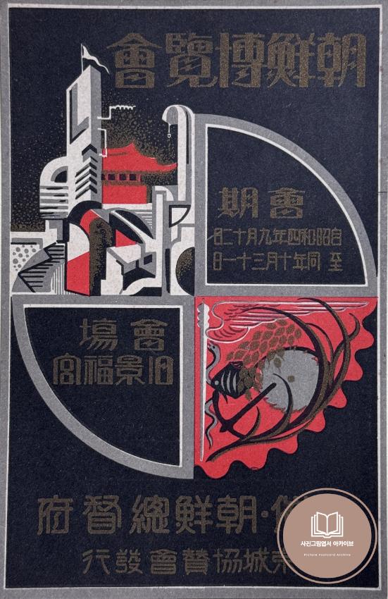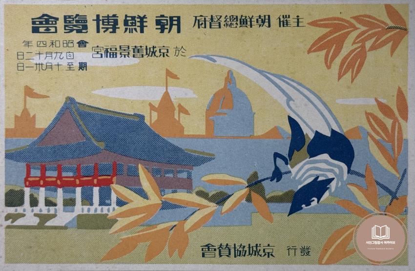 소화4년(1929年) 경복궁에서 개최한 조선박람회 홍보 사진그림엽서이다. 조선박람회는 1929년 9월 11일부터 10월 31일까지 진행되었으며, 경복궁 내의 시설을 회철하여 행사가 진행되었다. 당시 박람회는 조선총독부에서 주최하였고, 이를 관변단체인 경성협찬회 등에서 후원하였다. 조선총독부는 박람회를 통해 식민통치의 정당성과 식민 본국의 우월성을 선전했다.