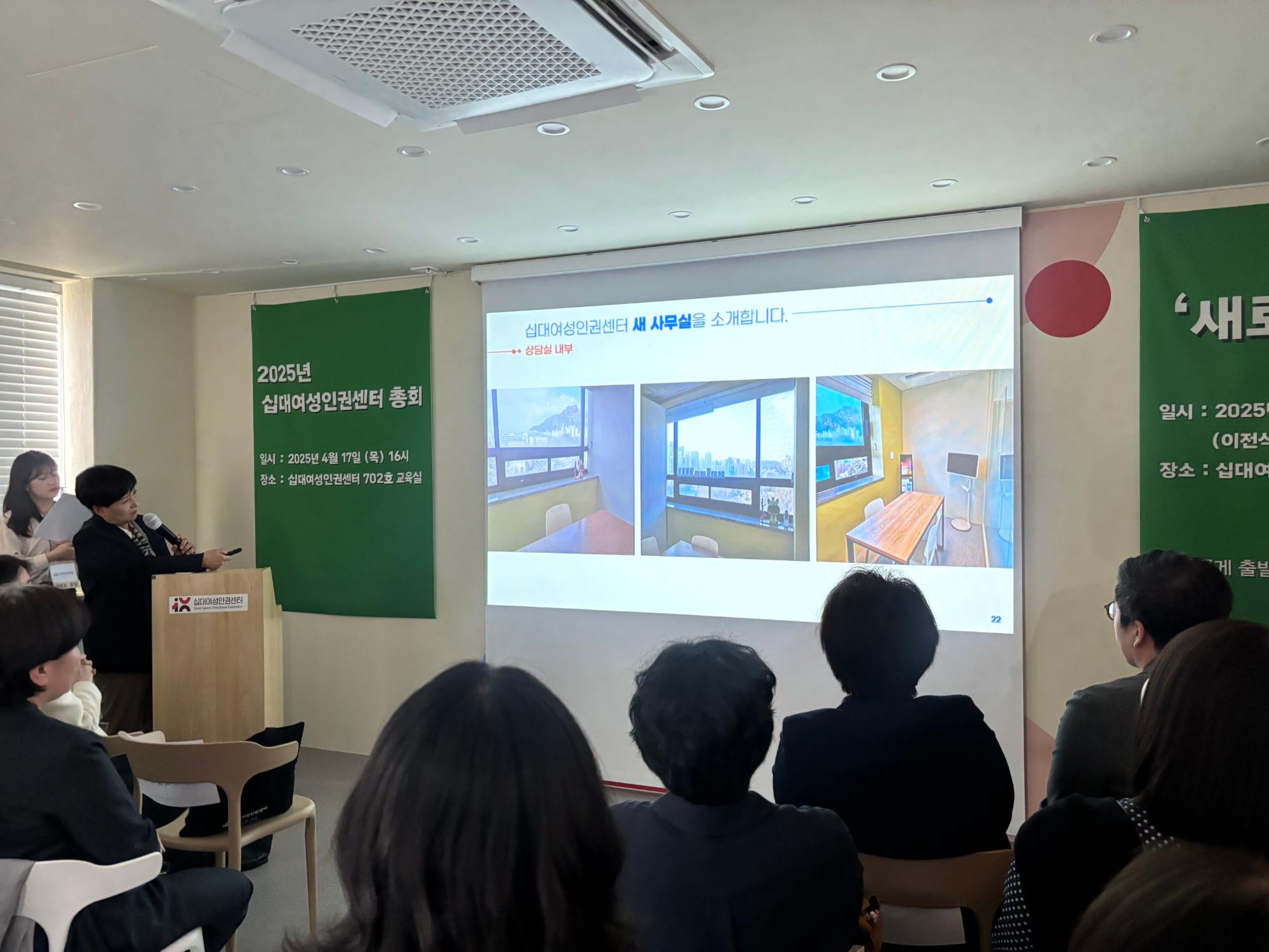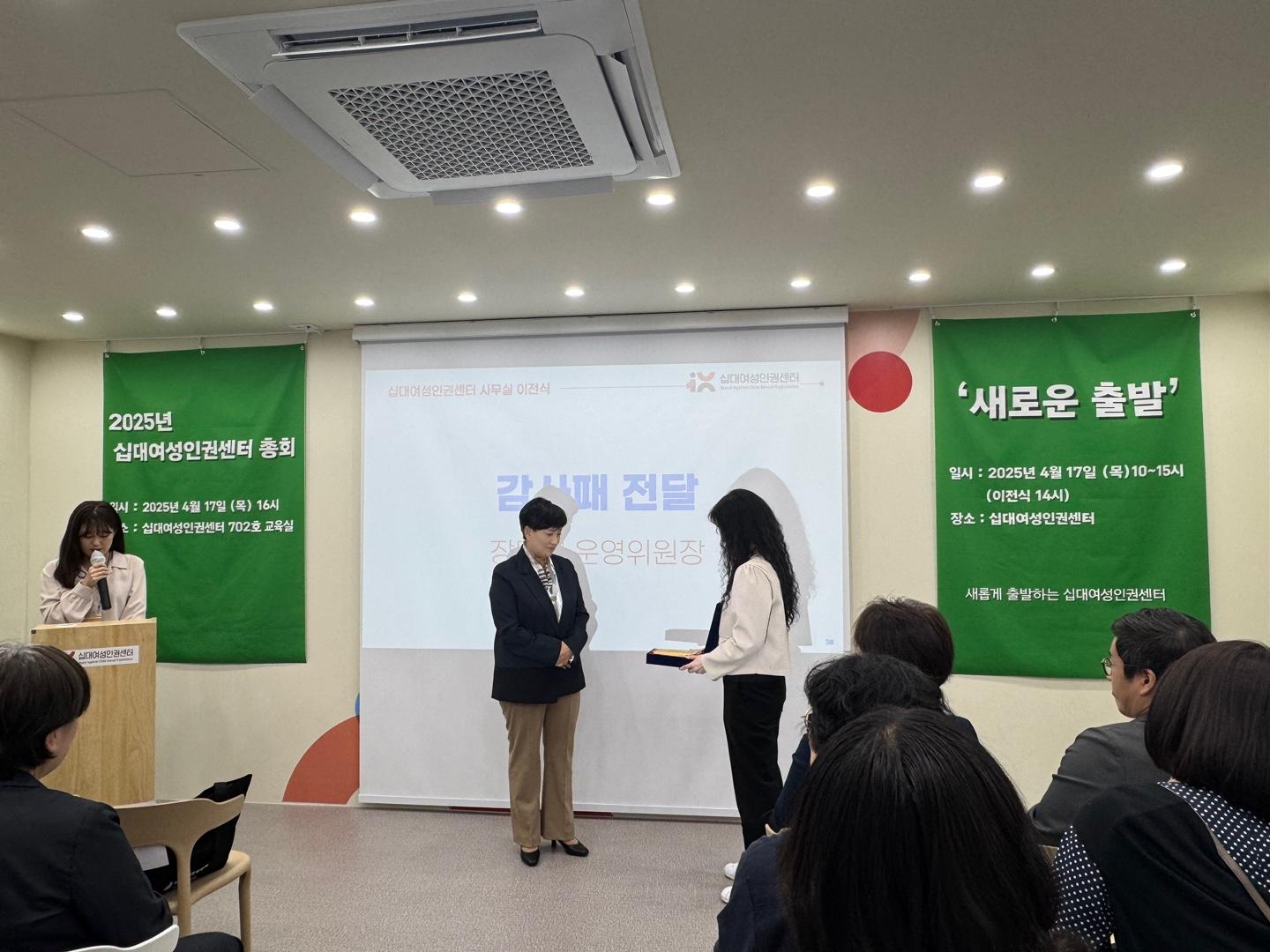 2025년 '십대여성인권센터 COMING DAY' 이전식 영상 - 건배사, 새 사무실 소개, 공간 소개 영상 시청, 감사패 전달