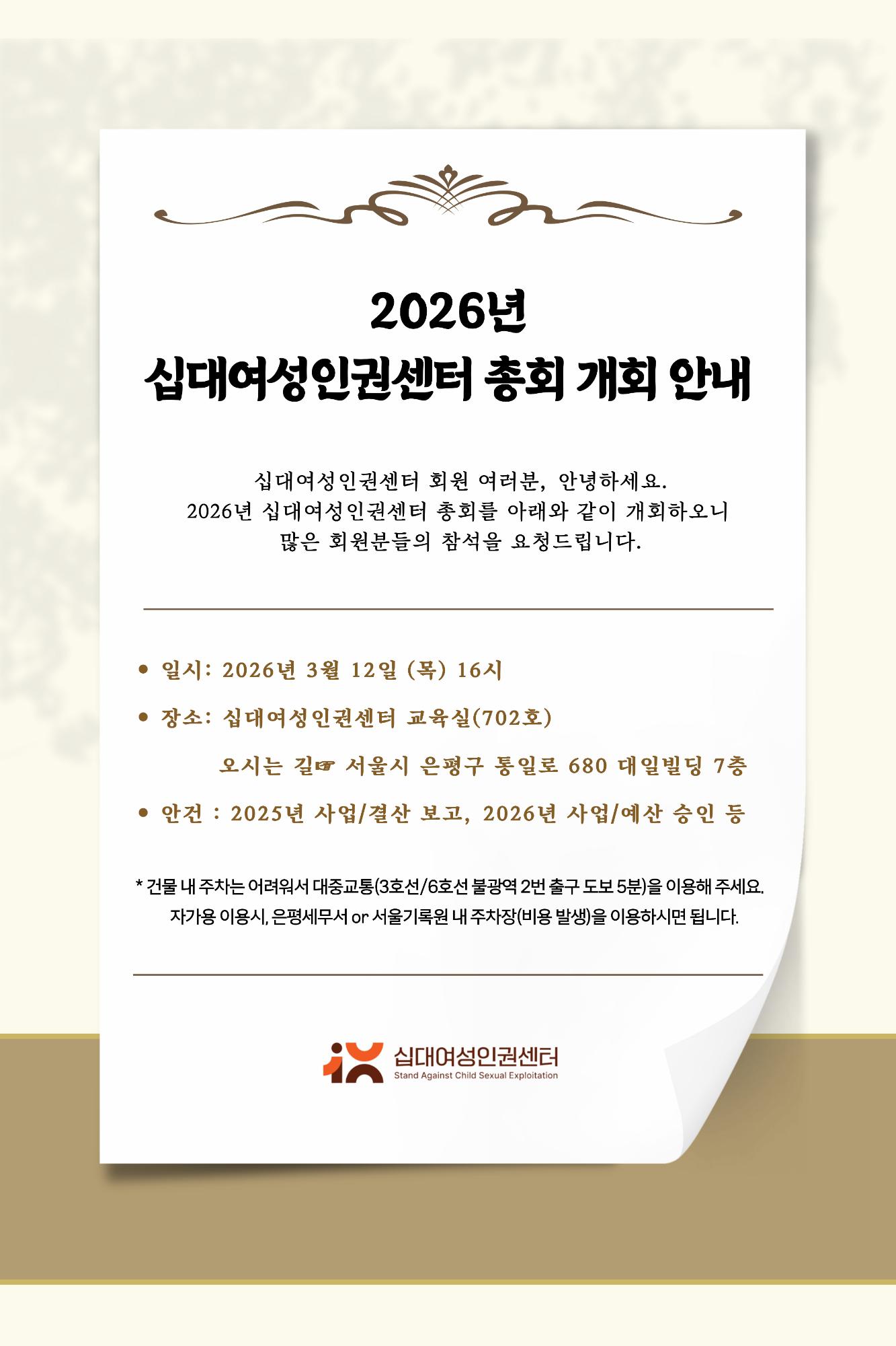 2026년 십대여성인권센터 총회 개회 안내문(회원 대상)