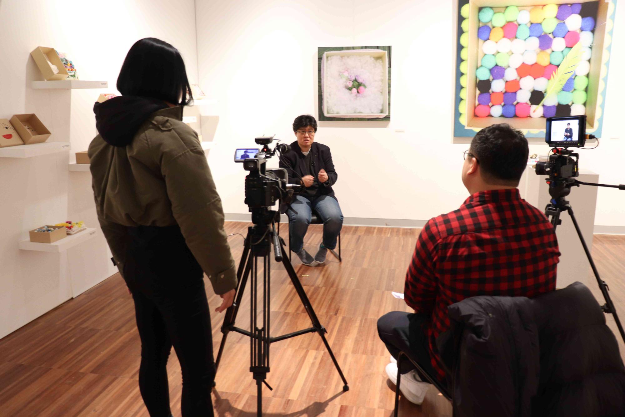 사진은 전시회 작품 및 관람객 모습을 촬영한 것이다.