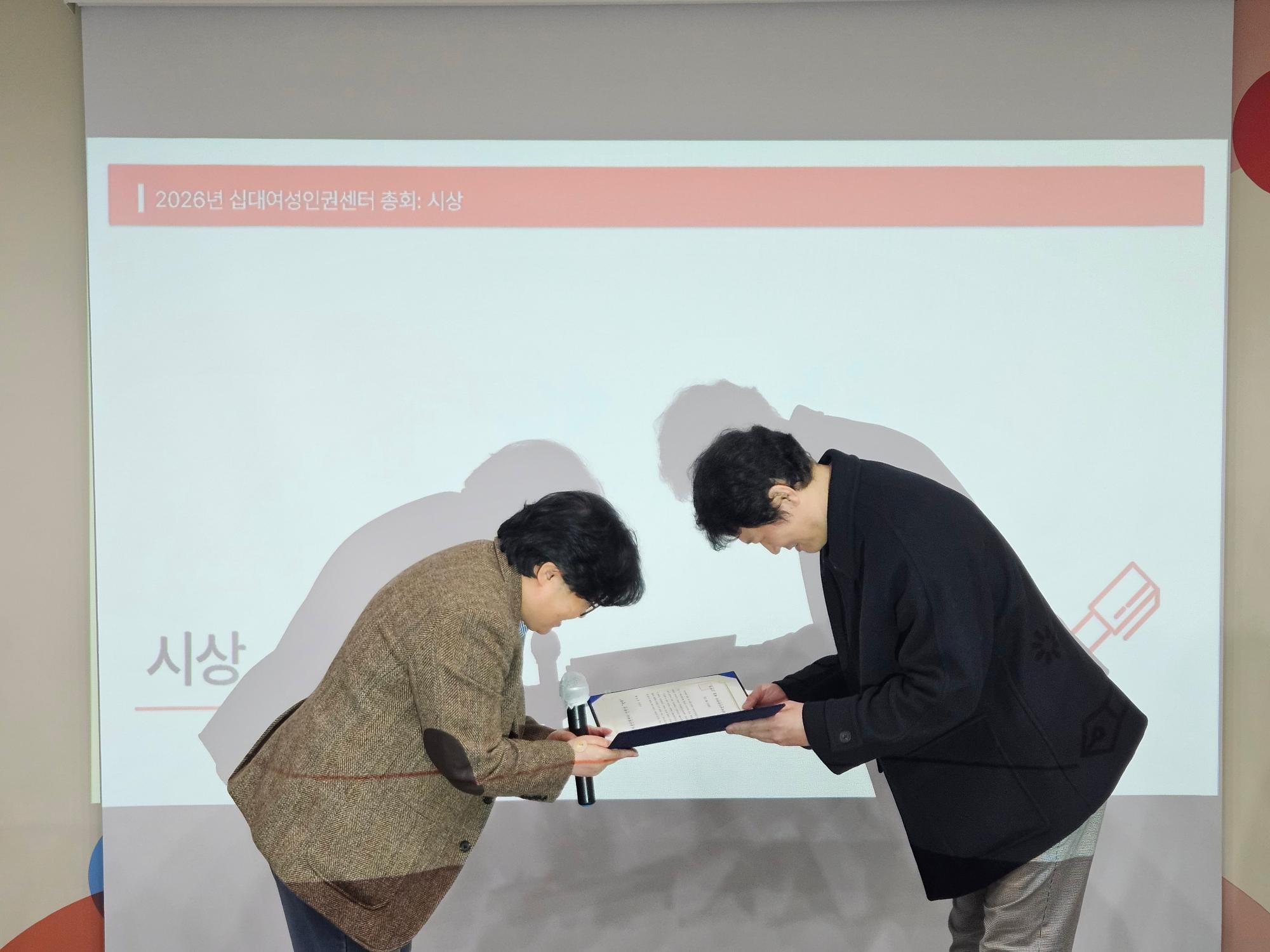 한국여성변호사회 아동여성인권상 <십대여성인권센터> 수상 상장