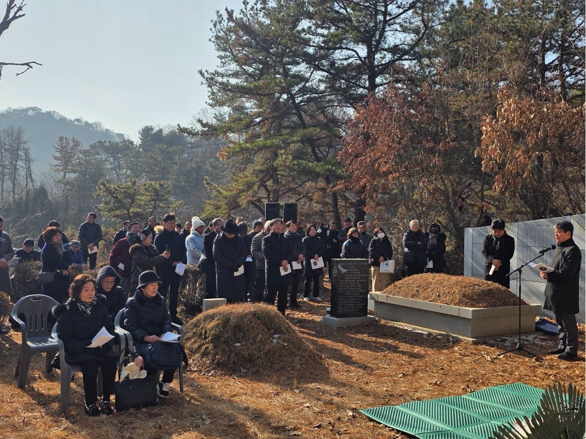 지난 1월 17일, 마석모란공원 통일동산에서 ‘늦봄 문익환 32주기 기념식’이 열렸습니다. 추운 날씨에도 불구하고 200 명 가량의 시민이 모여 늦봄 문익환을 기억하고 기념하는 시간을 가졌습니다. 1부는 한빛교회의 예배가, 2부에는 늦봄문익환기념사업회가 준비한 기념식이 진행됐습니다.