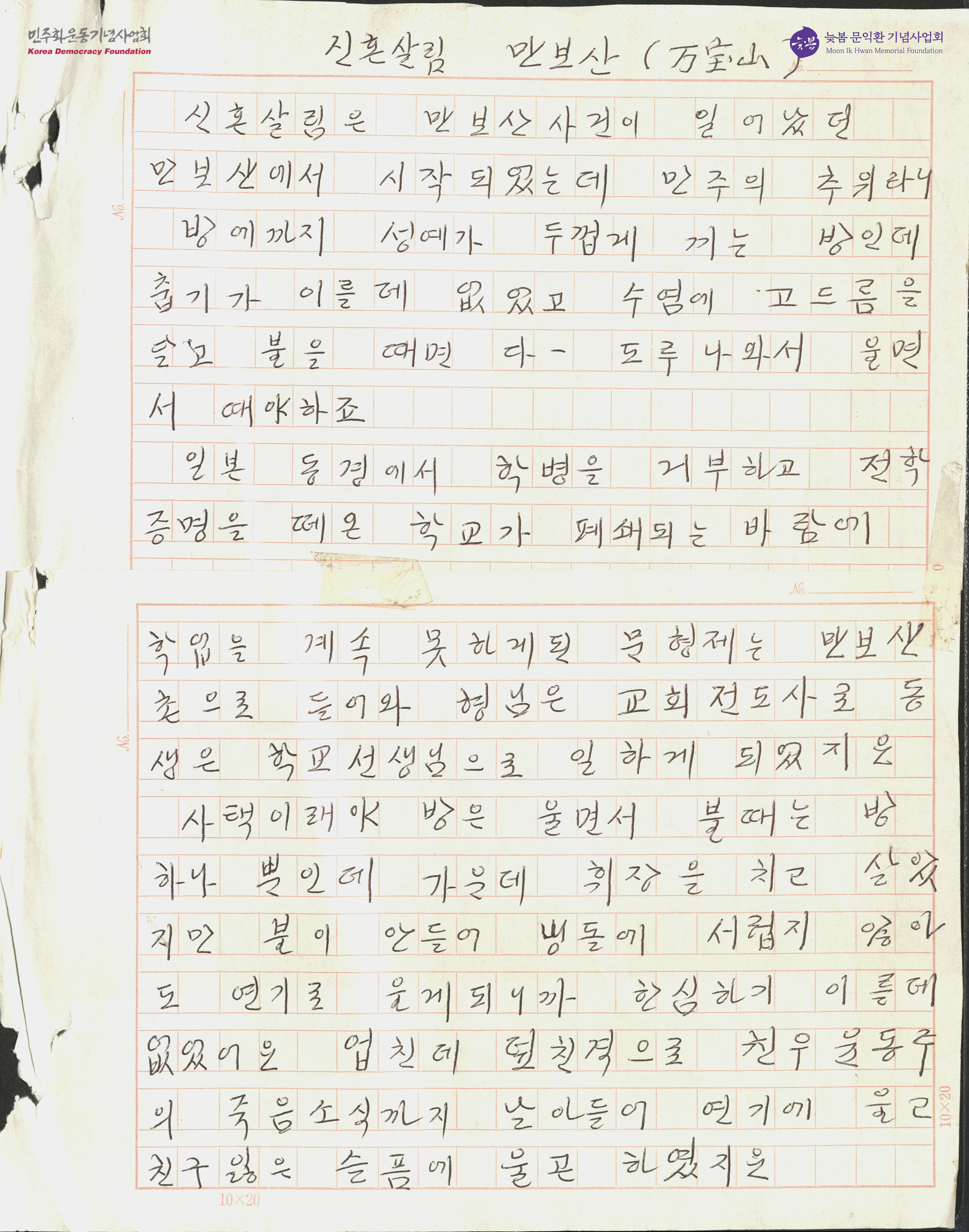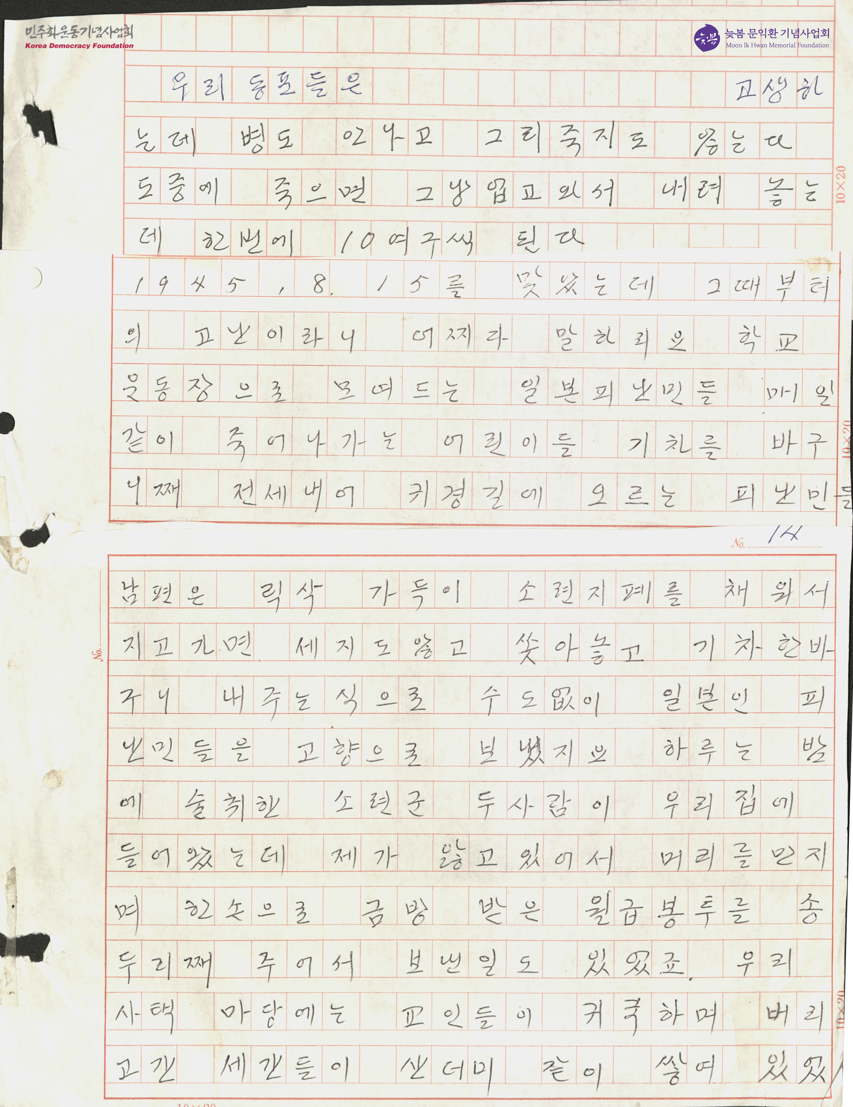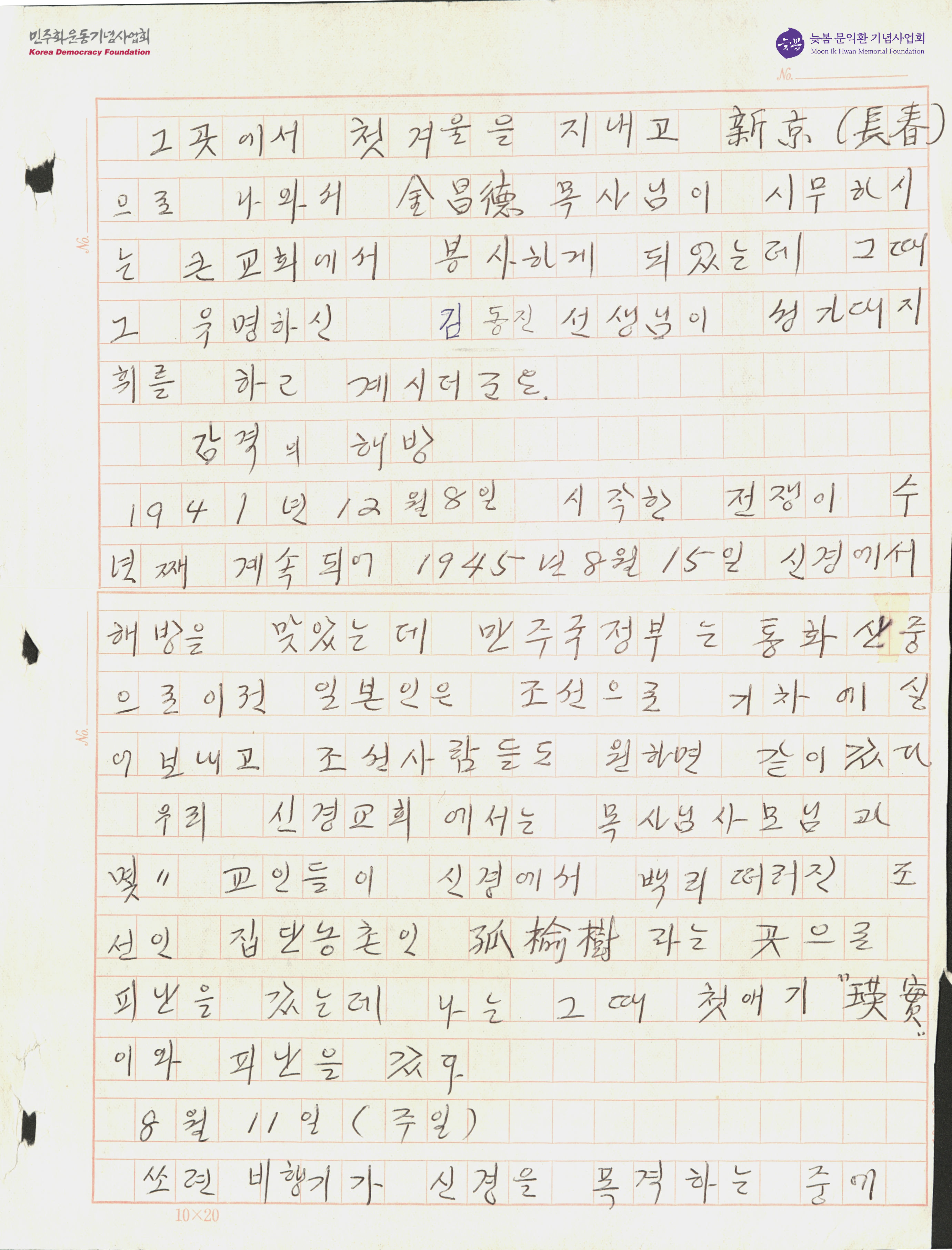 의 죽음, 해방과 피난길, 38선을 넘은 이야기 등을 기록했다.