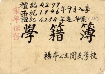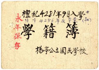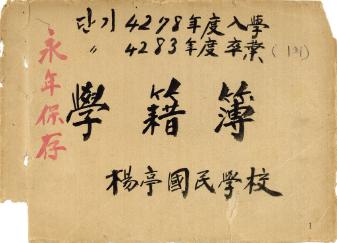 단기4279년(서기1946년 9월 입학), 단기 4284년 졸업한 양정공립국민학교 제2회 졸업생 학적부이다. 양정공립국민학교는 효문초등학교의 옛이름이다.