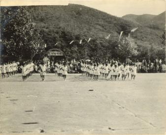 조일국민학교 운동회 여학생 마스게임 사진