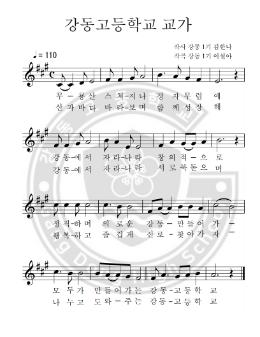 강동고등학교의 교가 악보로 본교 1기 김한나 학생이 작사, 이설아 학생이 작곡을 하였다.
