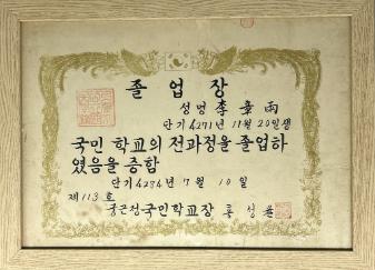 1951년 궁근정국민학교 이장우학생 졸업장이다.