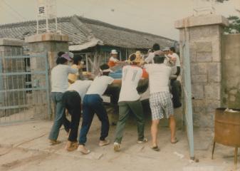 서생국민학교 1987년 대피시켰던 어선을 다시 작업 현장 바다로 옮기는 모습 사진