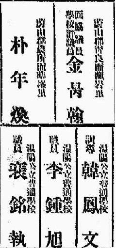 온양공립보통학교 훈도 韓鳳文 온양공립보통학교 직원 李鍾旭 온양공립보통학교 직원 裵銘執.