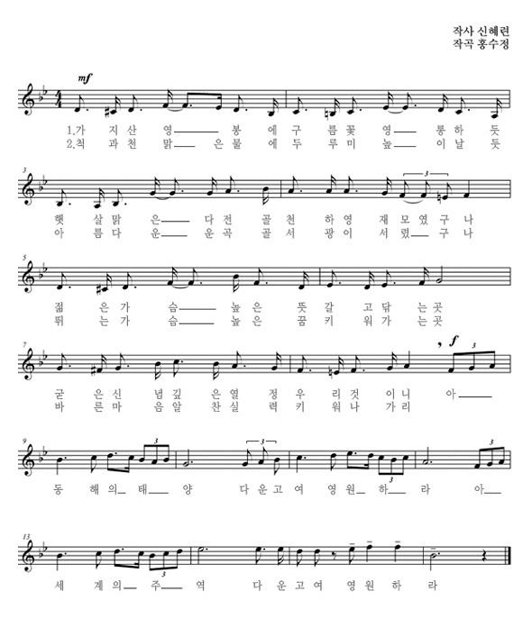 다운고등학교의 교가 악보로 신혜련 작사, 홍수정 작곡이다.